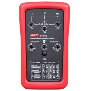 UT261 series is used for determining 3-phase power phase sequence, missing phase indication, and motor phase rotation (UT261B). UT261A and UT261B can measure AC voltage of 40~700V and 90~600V respectively. These devices can operate in frequency range of 15~400Hz. UT261 are durable devices which can withstand impact from 2 meter’s height. Test leads with protective tubing are included in optional accessories.